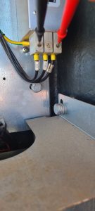 Locate the G4 junction block on the right side of the control panel above the circuit breakers on the bottom. Install black lead from your meter into the green and yellow block