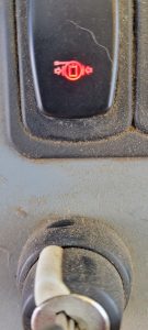 Recalibrate length indicator and angle sensor according to PAT manual (found in mobile crane folder). Light would still go off at restart, but after any movements, light would go off. Scoped all the way out and then back in, and light has remained off.