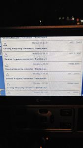 When operator would stop swinging, the Slew Drive would shut off just before or just after the brake would set. NO active faults, but fault history showed code 00011.10002 Transition 4.