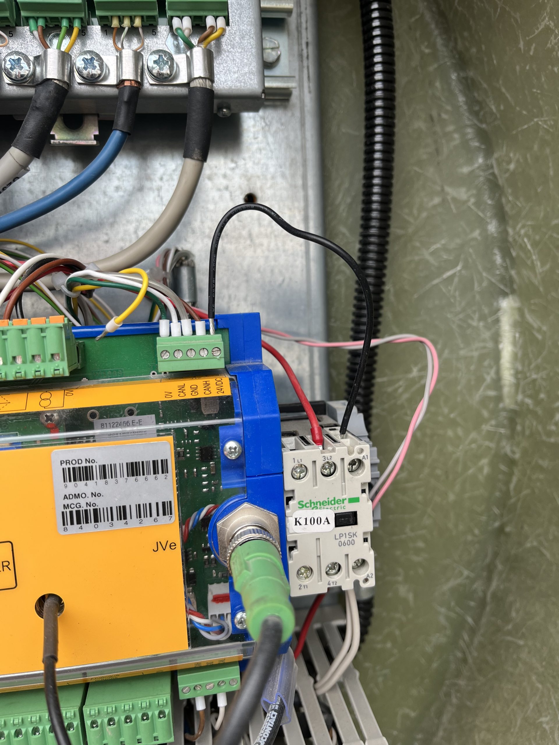 Customer complaint was that the crane would not connect to the remote. It was found the U230X Processor display wasn’t on, but the light shining on the processor was on. A voltage reading of 50V was taken at the J1/2 and continuity reading was taken at J1/1. It was noted that K100A wasn’t energized. A voltage reading at J12/5 was taken and found a reading of 0Volts