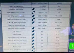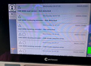 the drives were all operational but there were multiple faults codes being thrown. CAN Saturation, CAN Sense codes, and various codes relating to trolley, hoist and load.