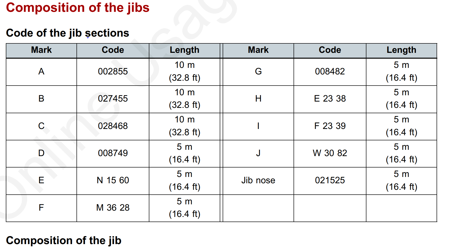 Use this to put jib parts together with their fucked up names from Potain